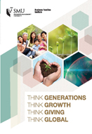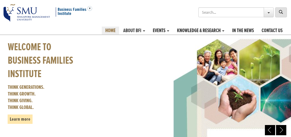 BFI@SMU collaborates with various partners, academic or practice, to be a leader in Asian business family-related knowledge. The Institute also encourages business families to Think Generations, Think Growth, Think Giving and Think Global. In doing so, BFI@SMU addresses business family-specific issues such as succession, family governance, entrepreneurship and wealth management. The mission of BFI@SMU is to enable business family members to be engaged and responsible stewards of their families, businesses and communities, through education, research and ecosystem support.